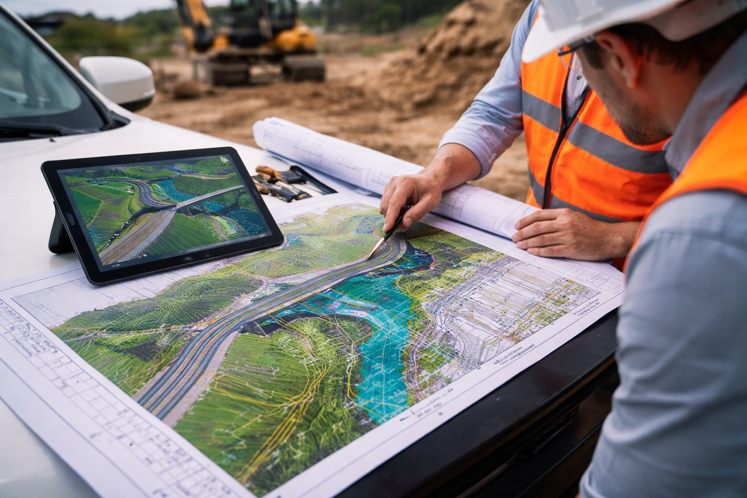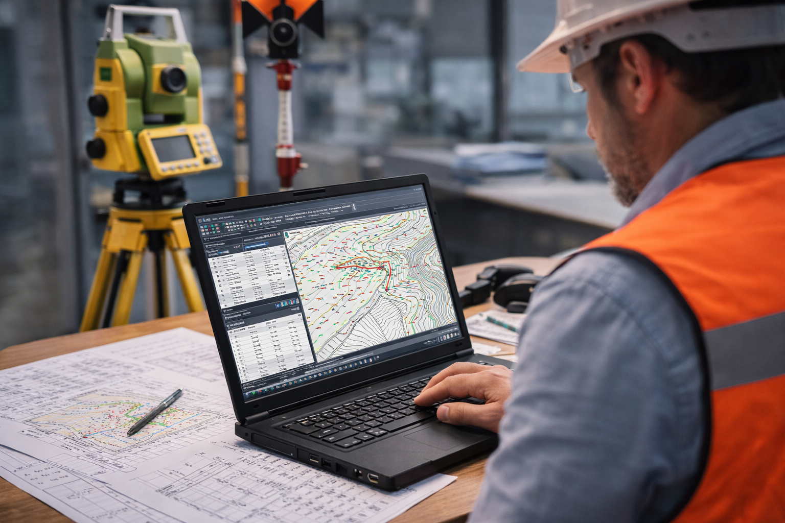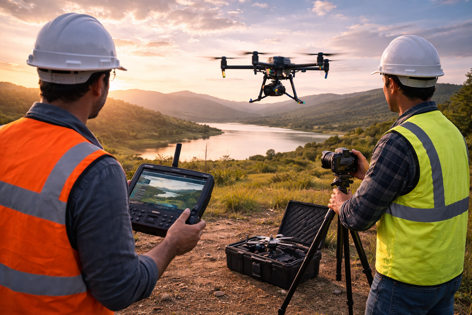 Training on modern equipment including advanced Total Stations, DGPS, and professional drones.